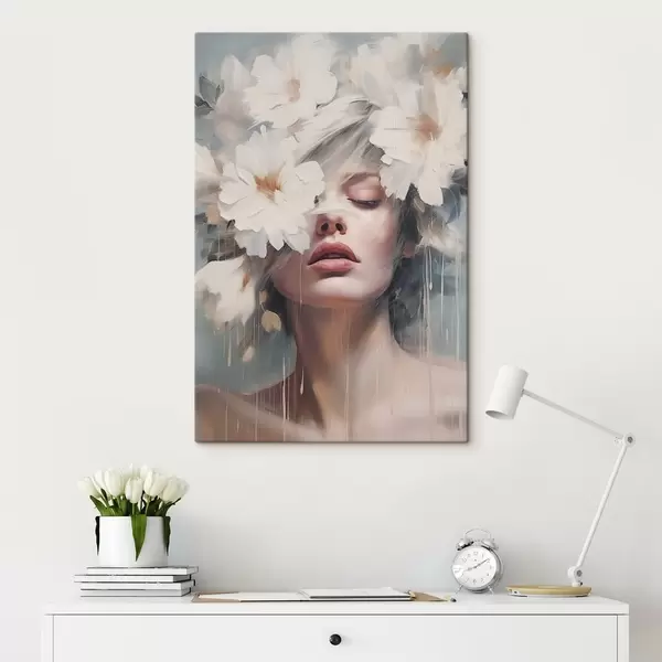 Cuadros Retrato femenino con flores blancas Nr s45219