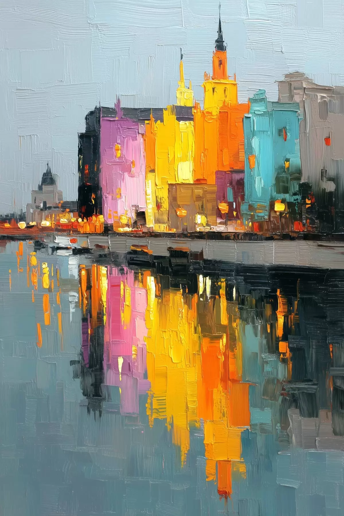 murales de pared Luces de la ciudad: paisaje vibrante en estilo empastado s45242
