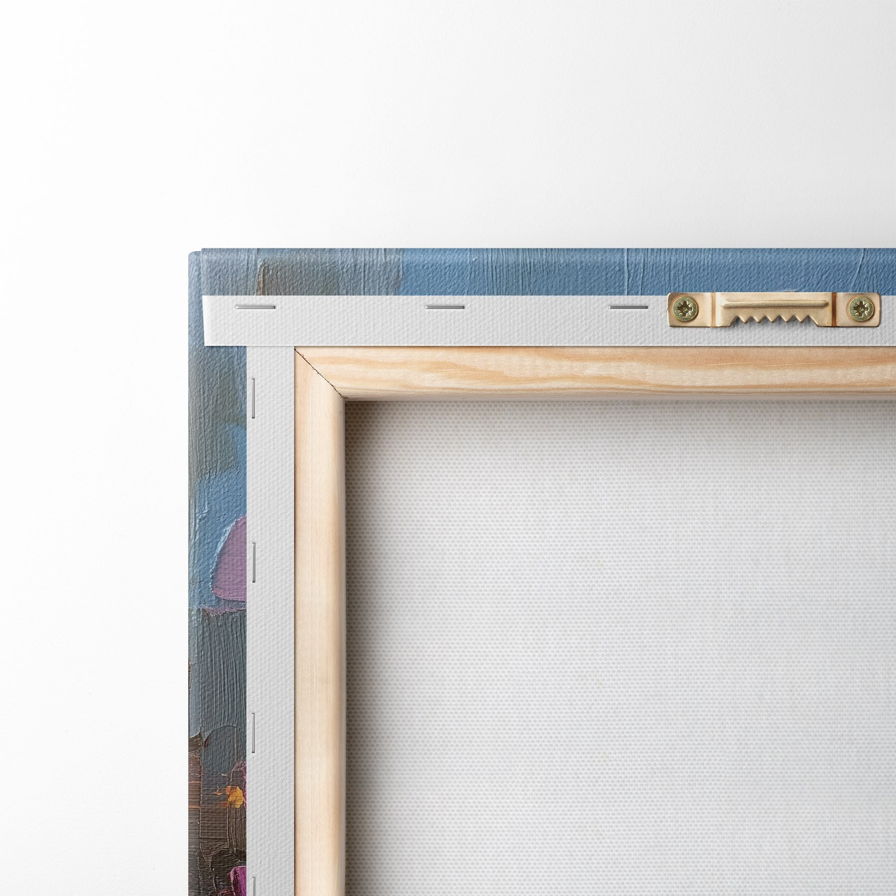 Vendemos cuadros en bastidor: se trata de un marco de madera sobre el que se extiende el lienzo. Este cuadro no necesita marco; puedes colgarlo directamente en la pared.