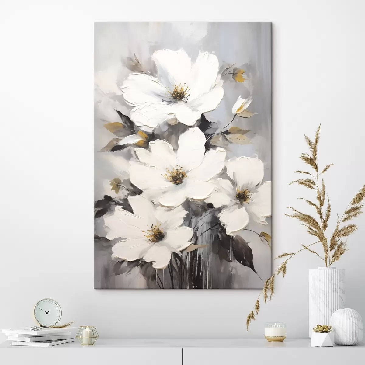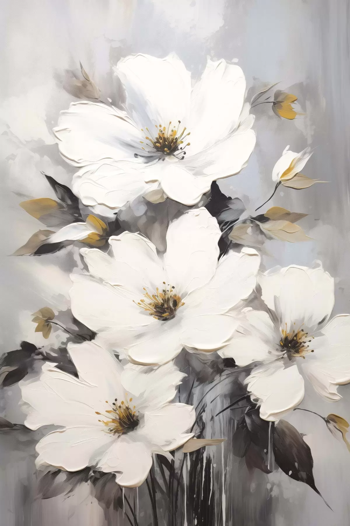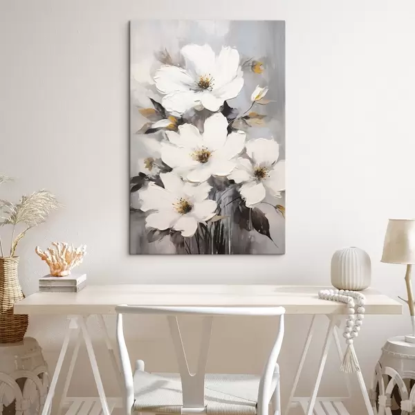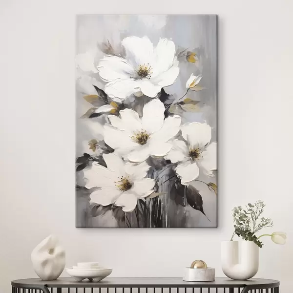 Cuadros Flores blancas: pintura volumétrica sobre fondo gris Nr s45252