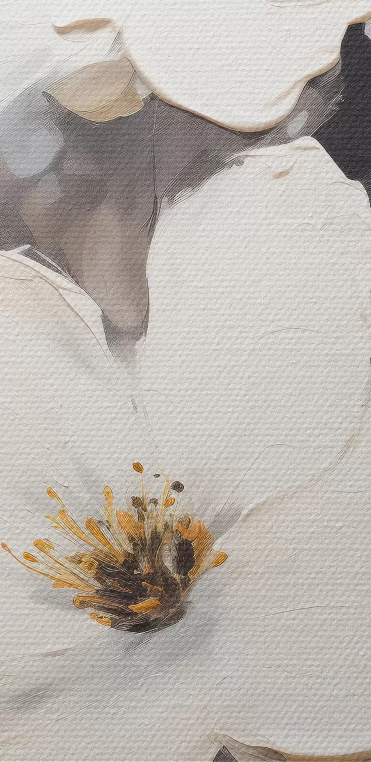 murales de pared Flores blancas: pintura volumétrica sobre fondo gris s45252