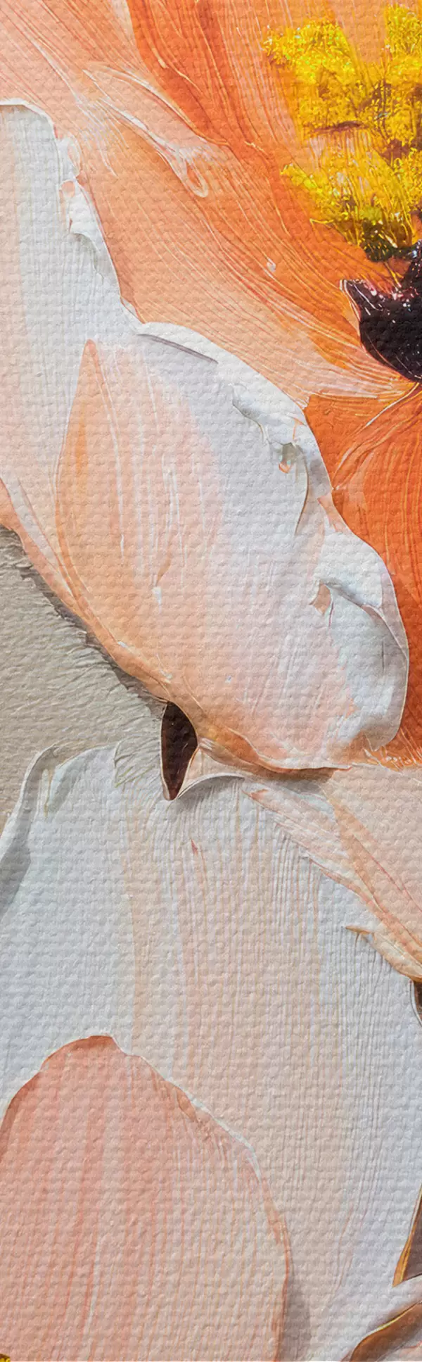 Hay tres tipos de material disponibles para pedidos: Lienzo Económico - material denso y duradero para impresión digital, idéntico al lienzo de pintor, superficie impermeable, reproducción realista de los detalles, material de grano medio. Lienzo Premium - la textura se asemeja a la de un lienzo de pintor (pequeños hilos entrelazados). Reproducción suave y detallada de la imagen sobre una superficie mate. Eco-Premium - tejido 100% algodón de alta calidad. Gracias a las fibras naturales de algodón, el material es duradero y resistente al desgaste. Excelente reproducción del color y el detalle.