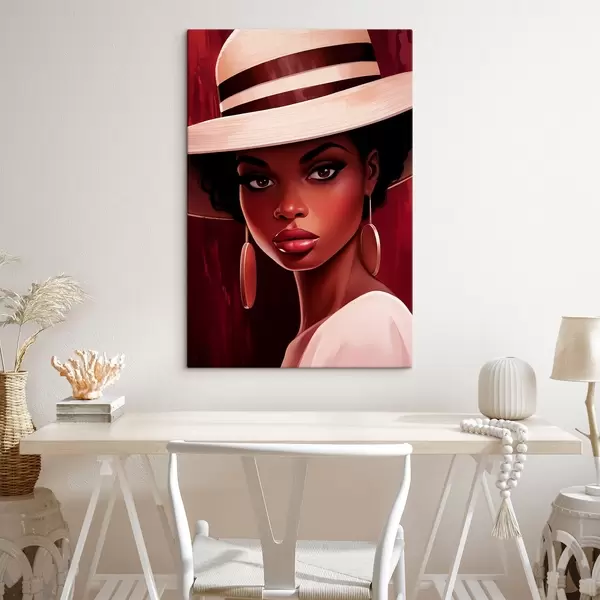 Cuadros Mujer con sombrero claro y pendientes redondos Nr s45323