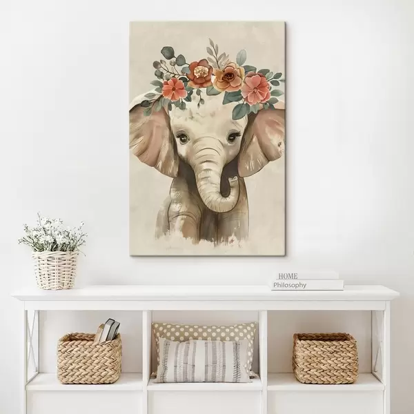 Cuadros Lindo elefante de acuarela con flores Nr s45330