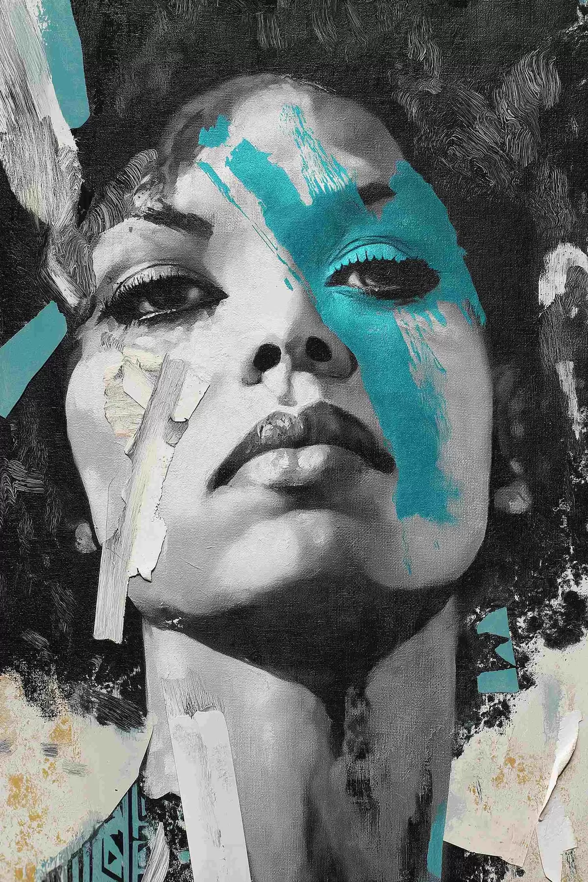 Cuadros Retrato en técnica mixta con fragmentos de pinceladas de color y texturas Nr s45416