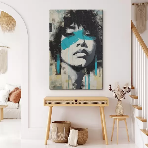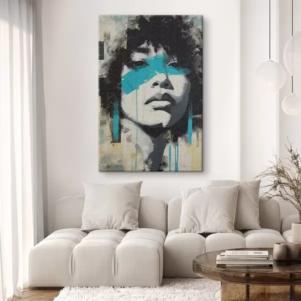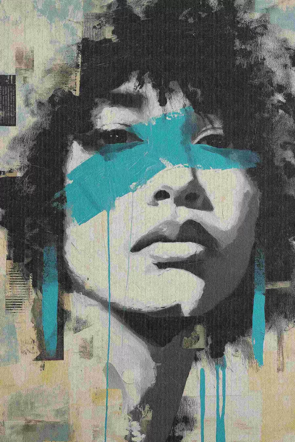 murales de pared Retrato en técnica mixta con fragmentos de pinceladas de color y texturas s45417