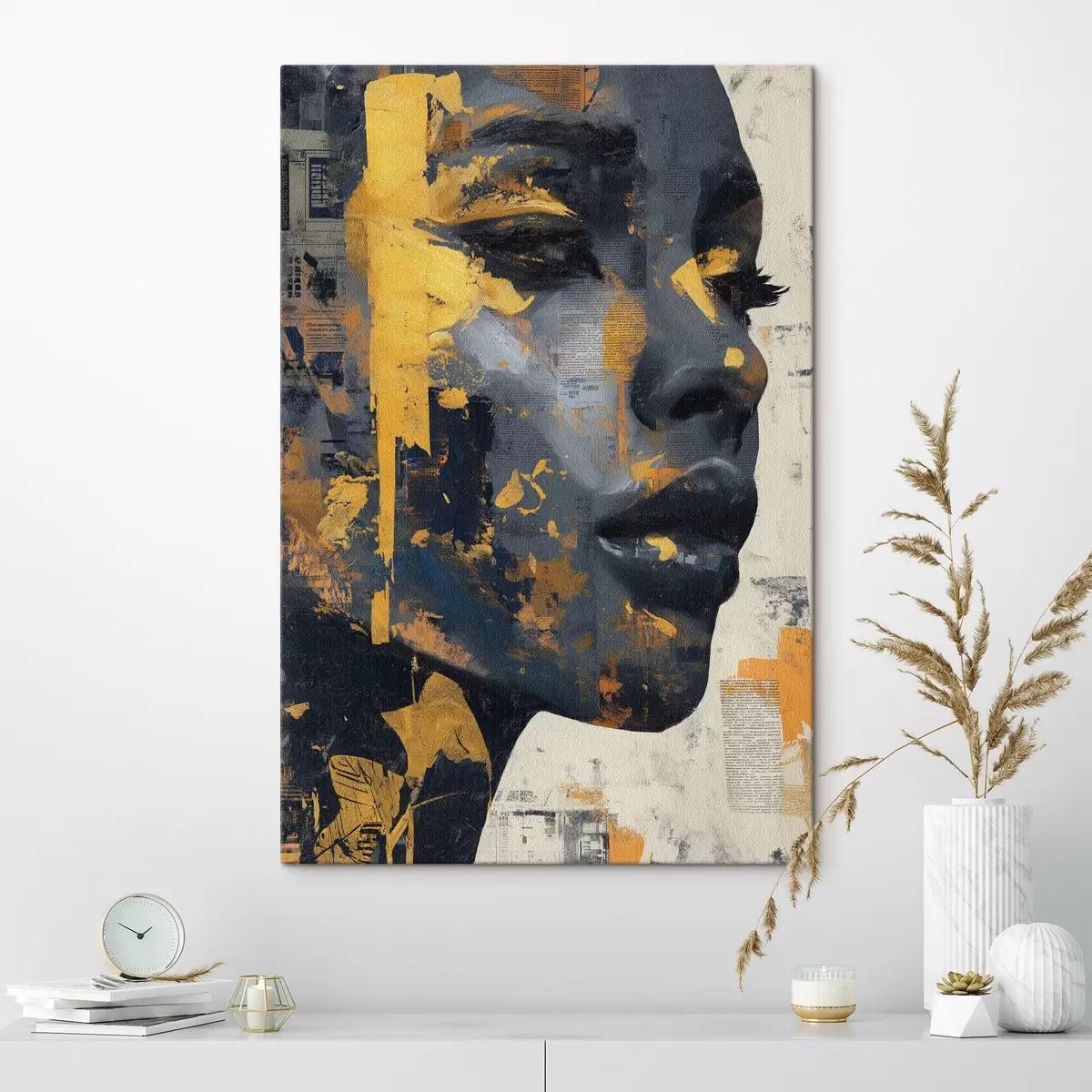 Cuadros Retrato en técnica mixta con fragmentos de periódico y pinceladas decorativas Nr s45420