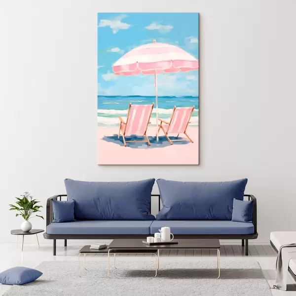 Cuadros Sombrilla y tumbonas en la costa Nr s45442
