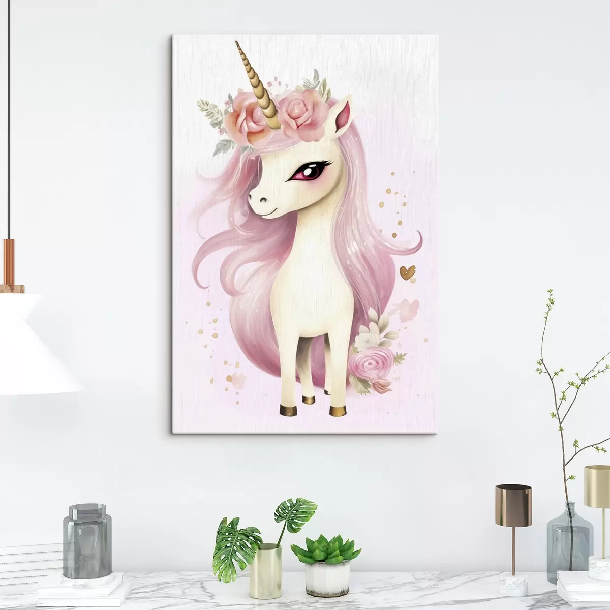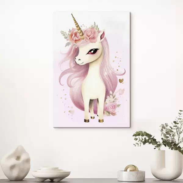 Cuadros Unicornio con crin rosa y corona floral Nr s45484