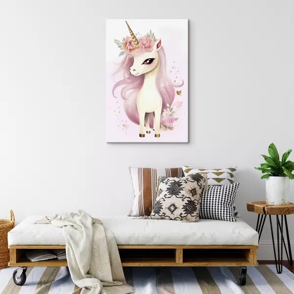 Cuadros Unicornio con crin rosa y corona floral Nr s45484