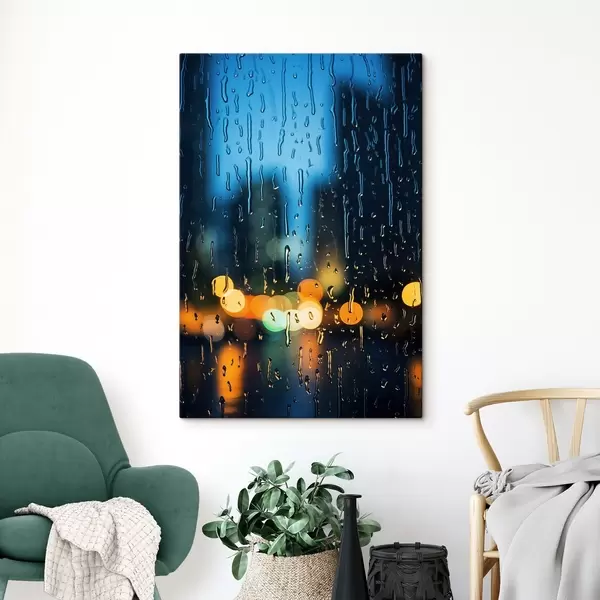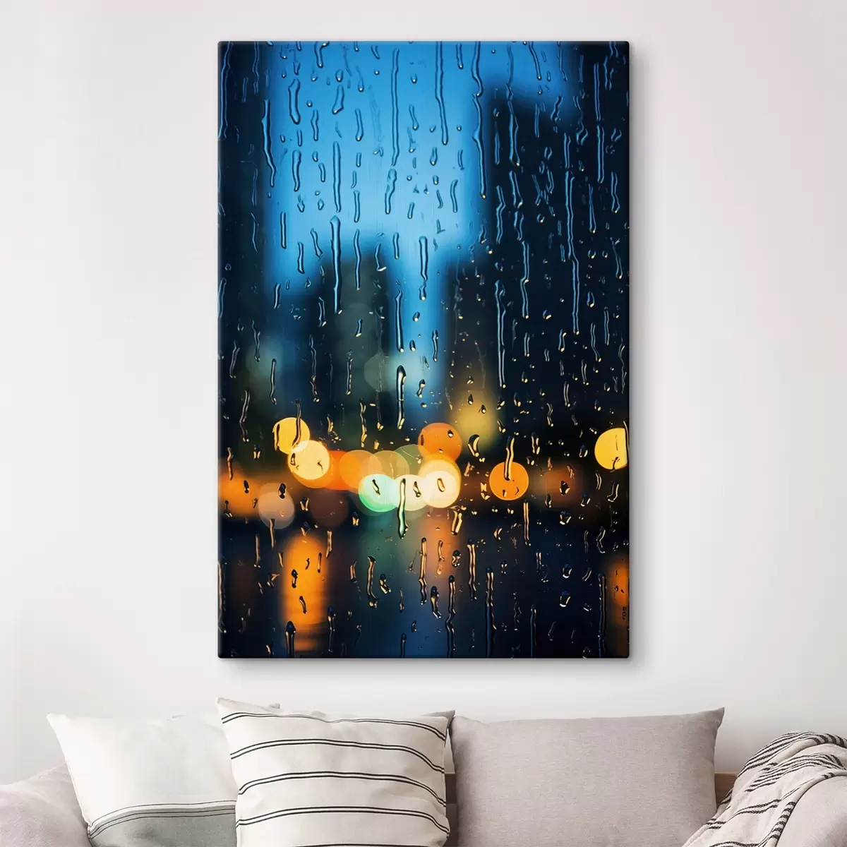 Cuadros Taza de café sobre una mesa bajo la lluvia Nr s45500