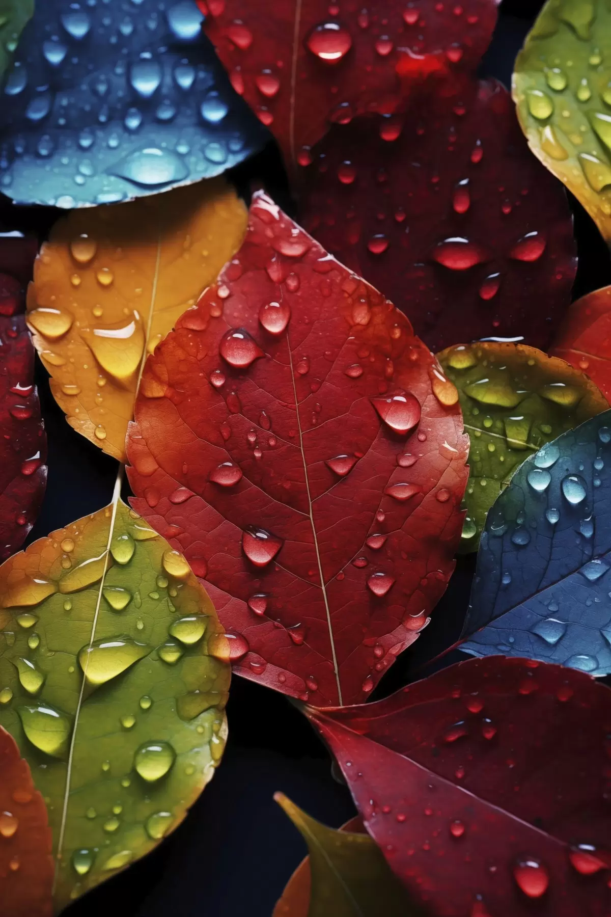 Cuadros Hojas de colores con gotas de agua Nr s45516