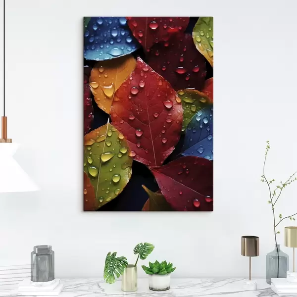 Cuadros Hojas de colores con gotas de agua Nr s45516