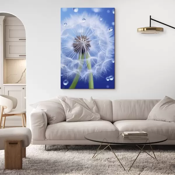 Cuadros Macrofotografía de un diente de león sobre fondo azul Nr s45517