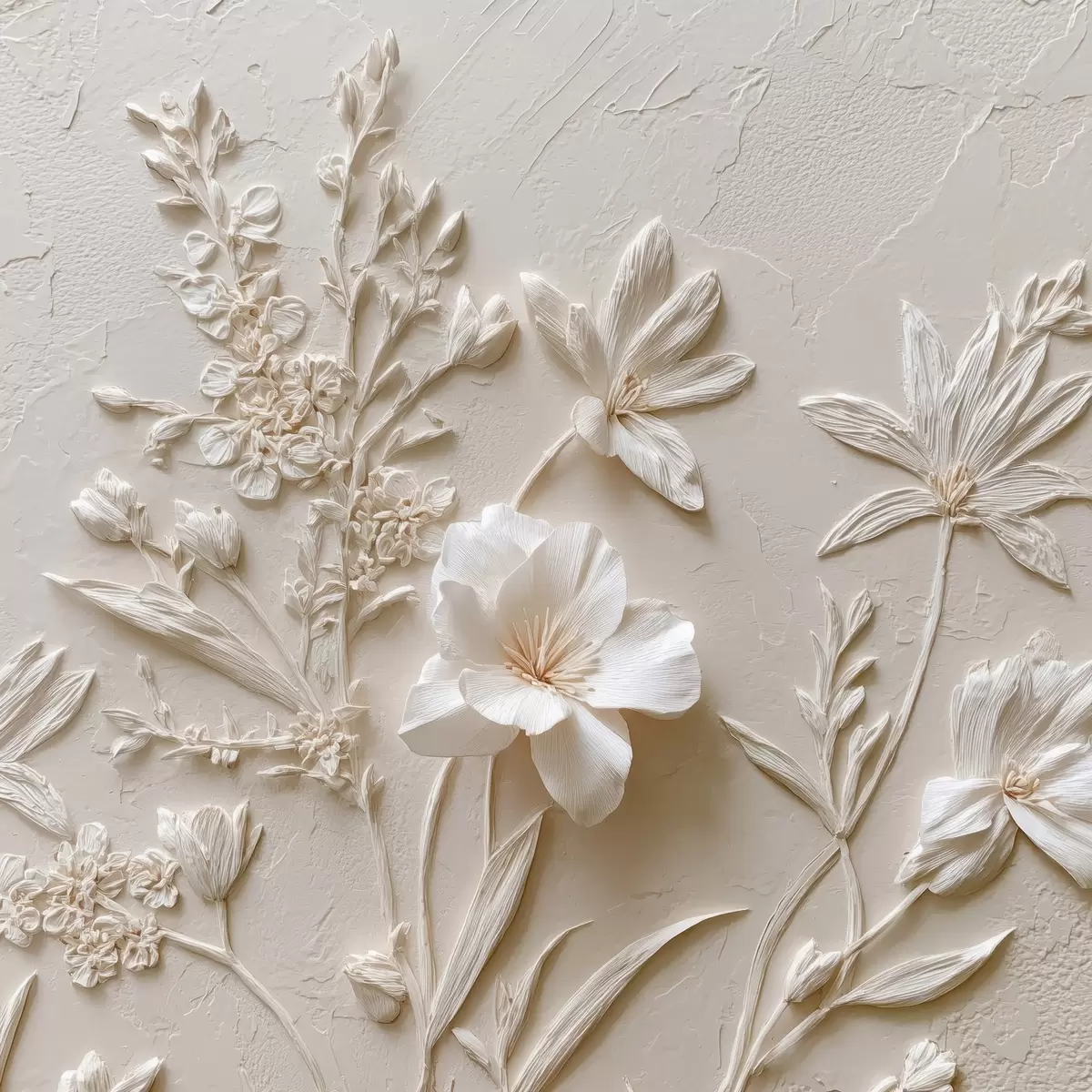murales de pared Motivo floral: estilo bajorrelieve con plantas sobre fondo claro s45536