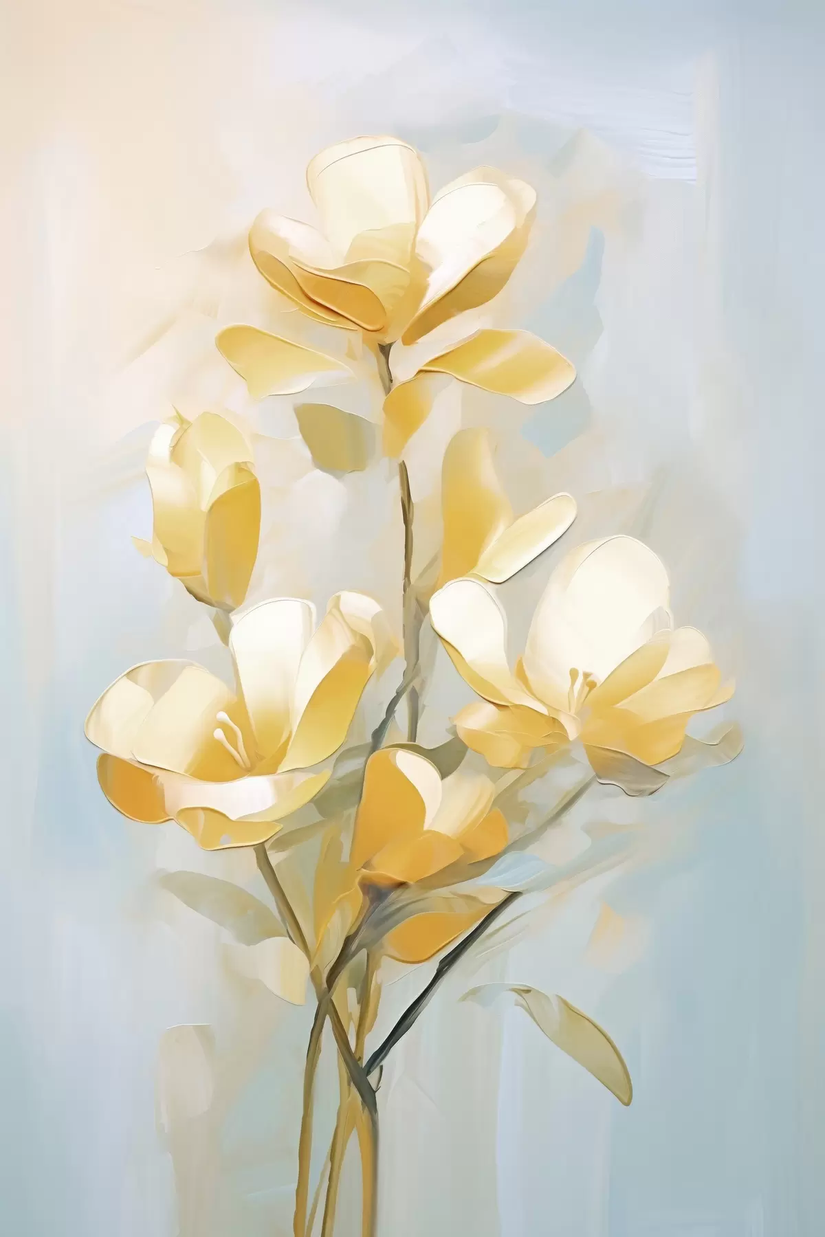 murales de pared Motivo floral: ramo en tonos amarillo claro y azul s45540