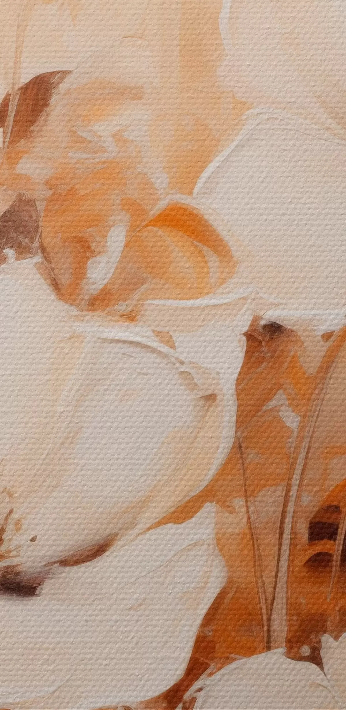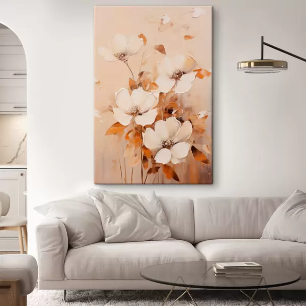 Cuadros Flores blancas con hojas naranjas, pinceladas delicadas, paleta de colores cálidos, composición elegante Nr s45573