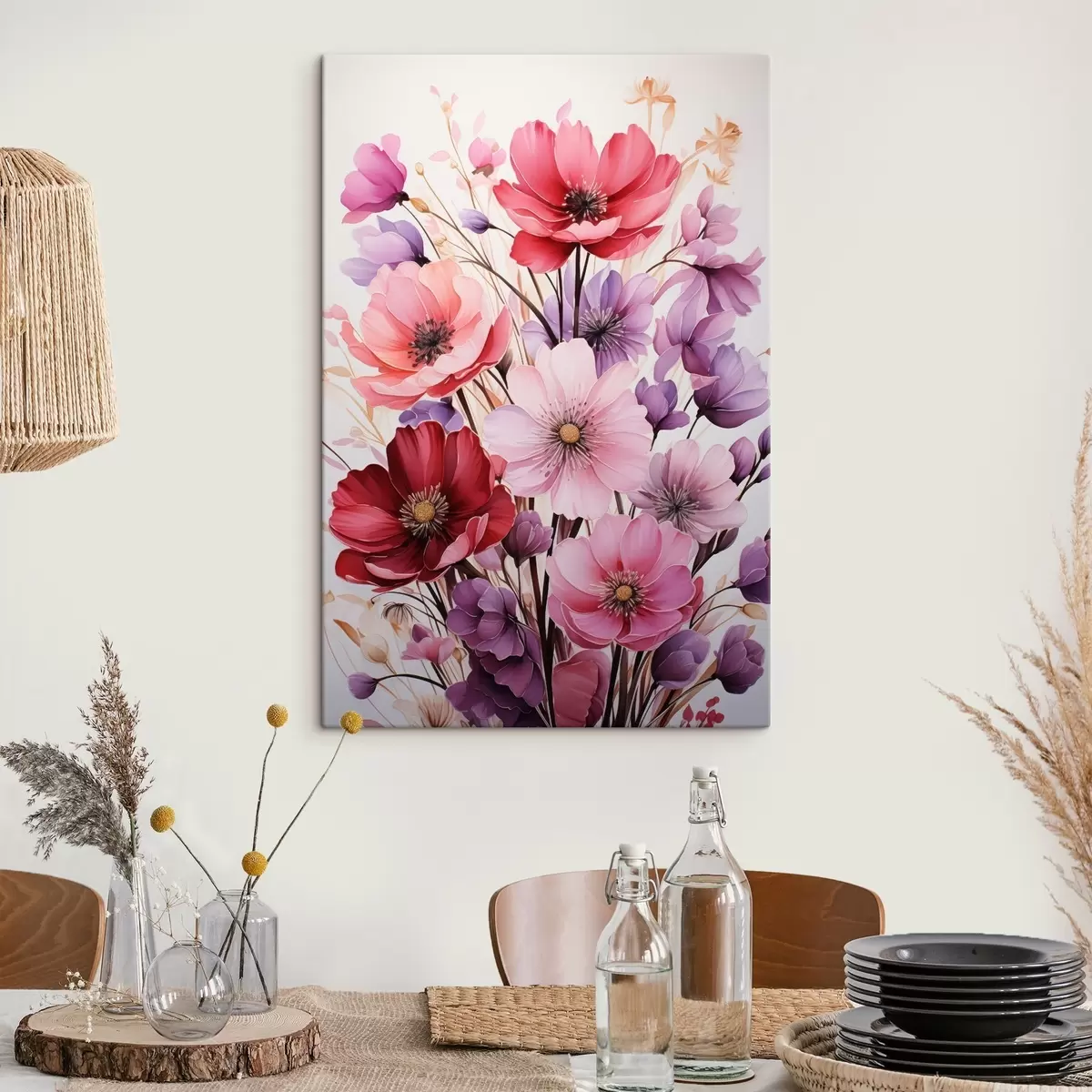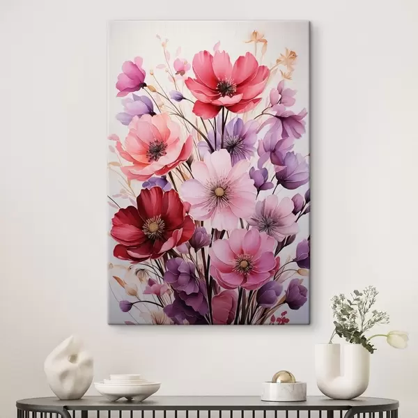 Cuadros Delicado ramo de amapolas rosas y lilas sobre fondo claro, estilo acuarela Nr s45601