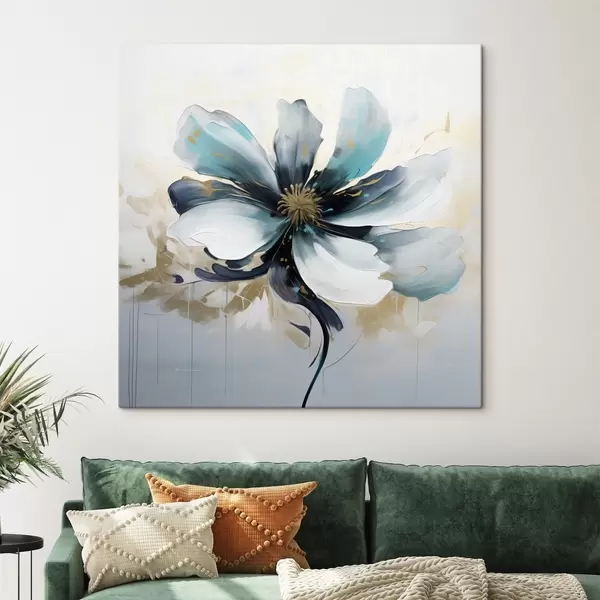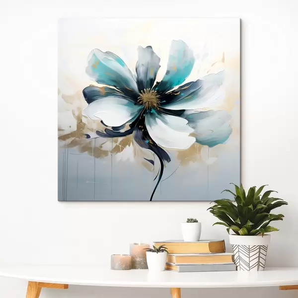 murales de pared Flor turquesa al óleo s45641