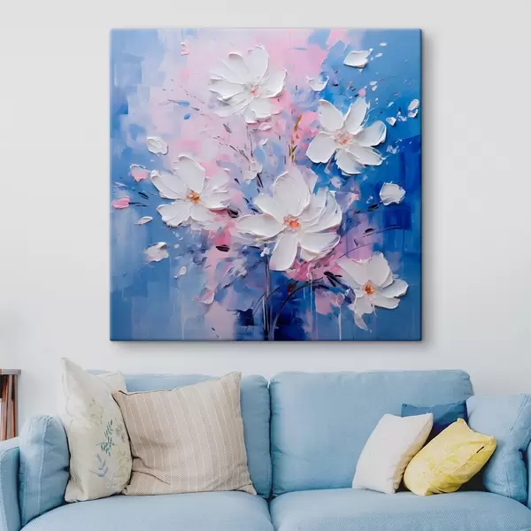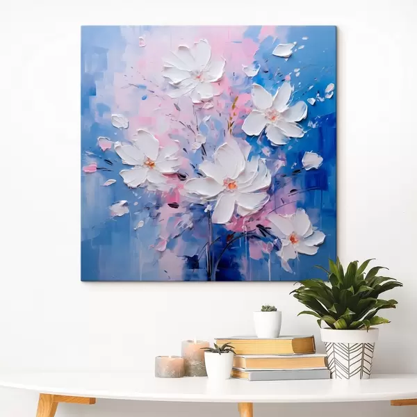 Cuadros Flores volumétricas sobre fondo azul en estilo empastado Nr s45648