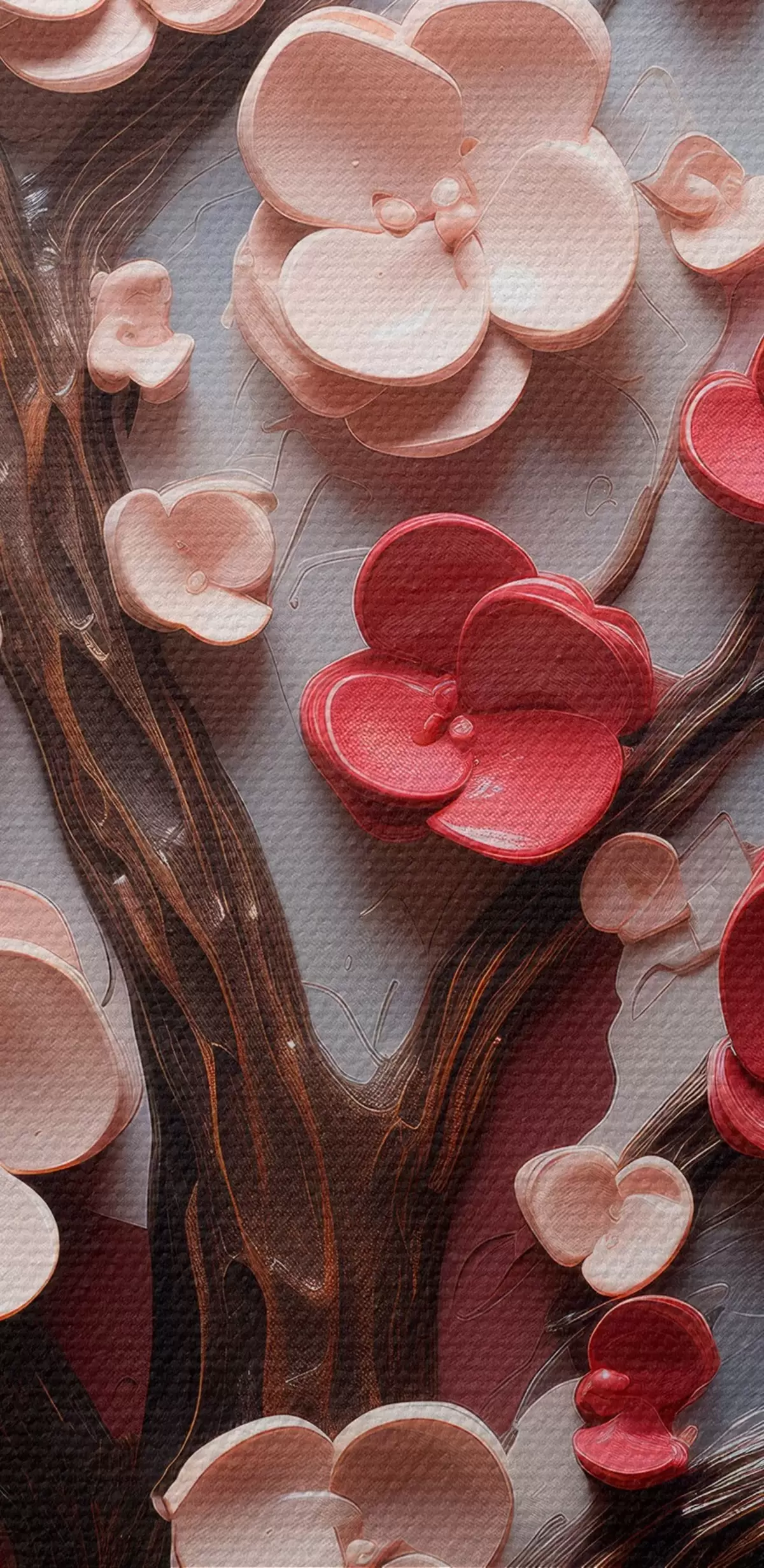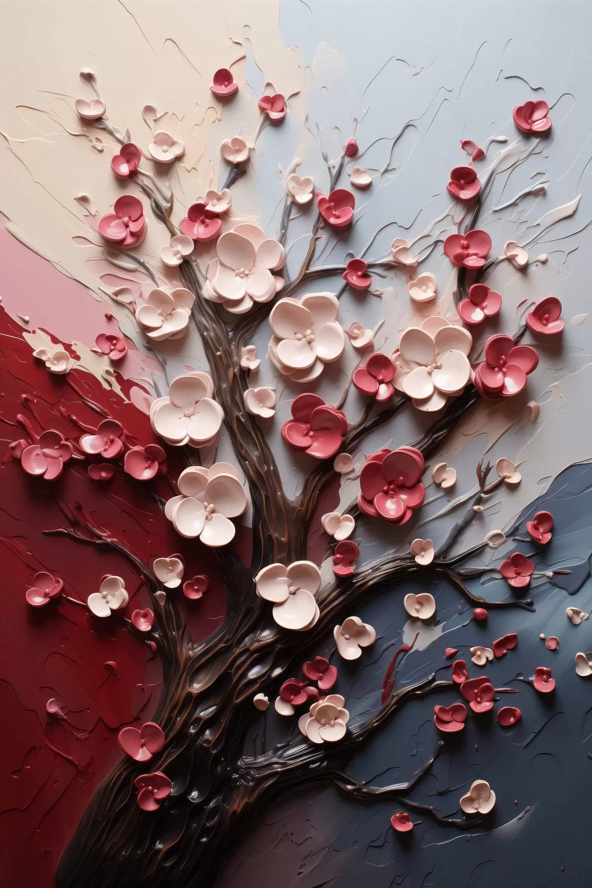 murales de pared Sakura volumétrica en estilo de pintura texturizada s45650