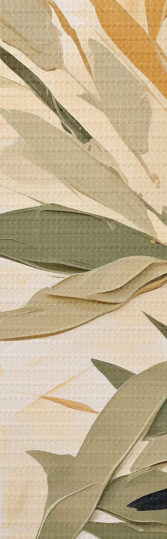 murales de pared Rama botánica con hojas verdes sobre fondo cálido s45690