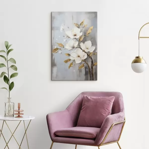 Cuadros Rama con flores blancas y hojas amarillo anaranjadas Nr s45692