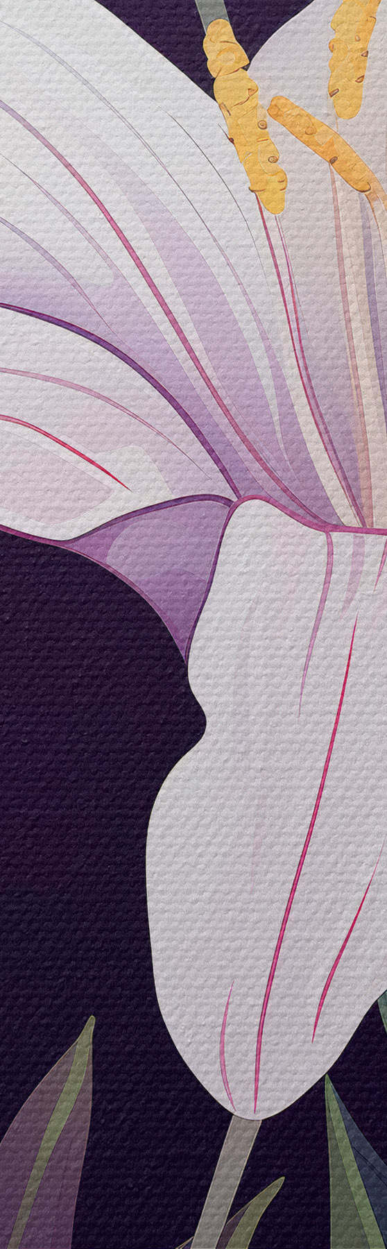 murales de pared Delicados lirios sobre fondo oscuro con hojas verdes s45697