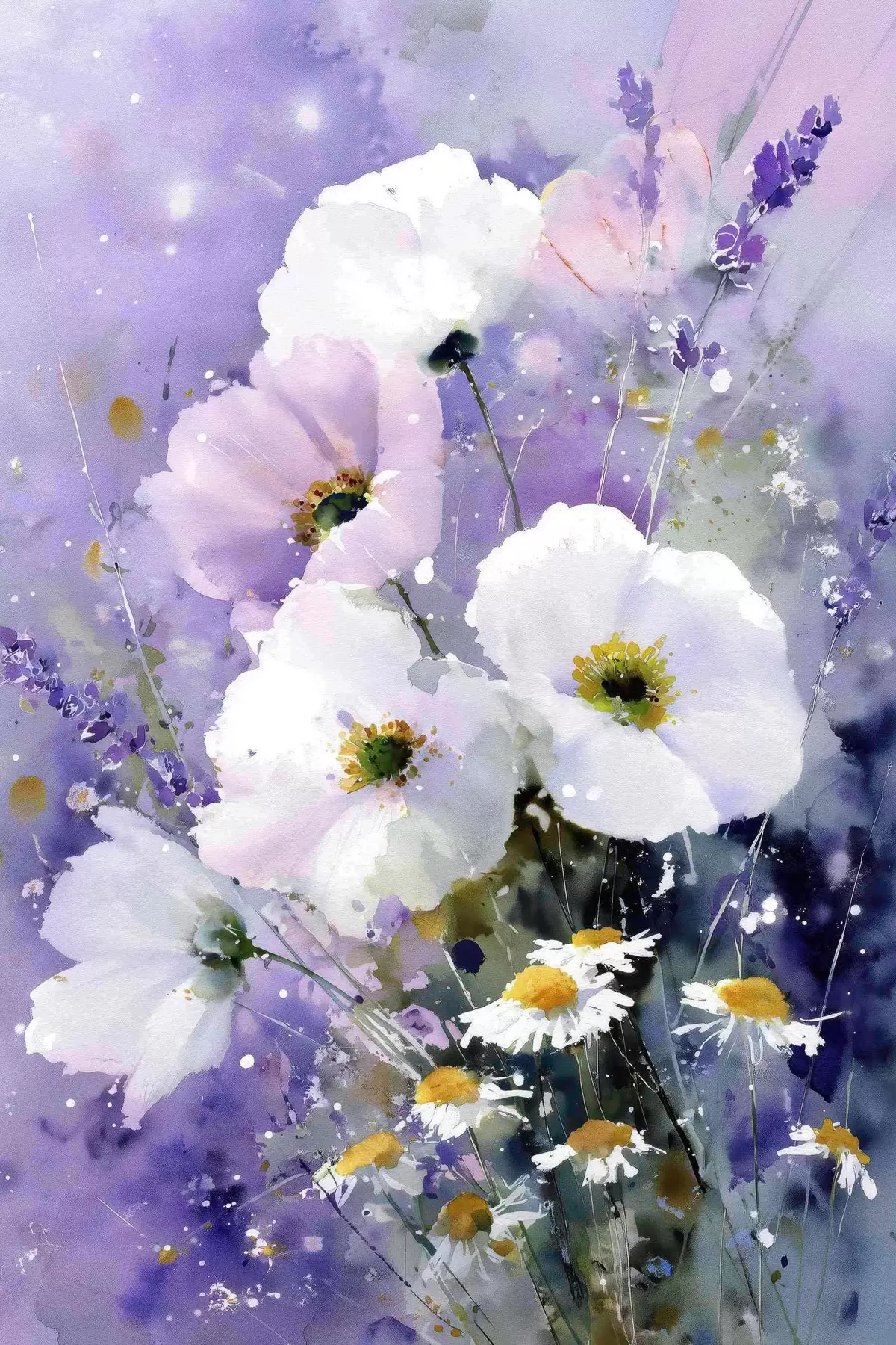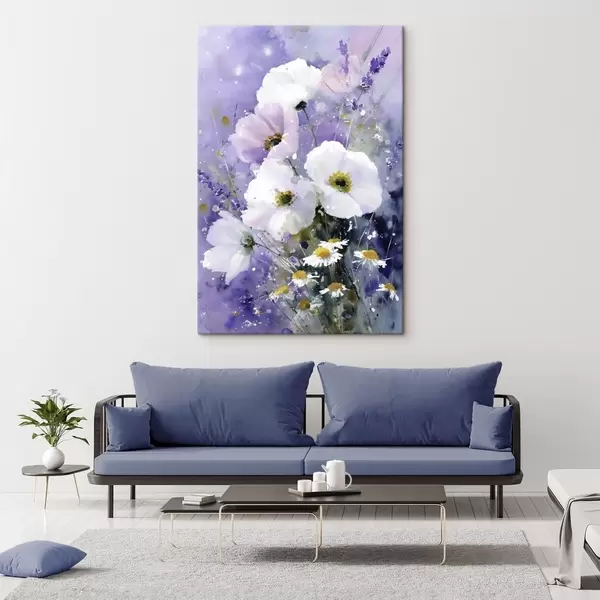 Cuadros ramo de acuarelas en tonos lila y blanco Nr s45719