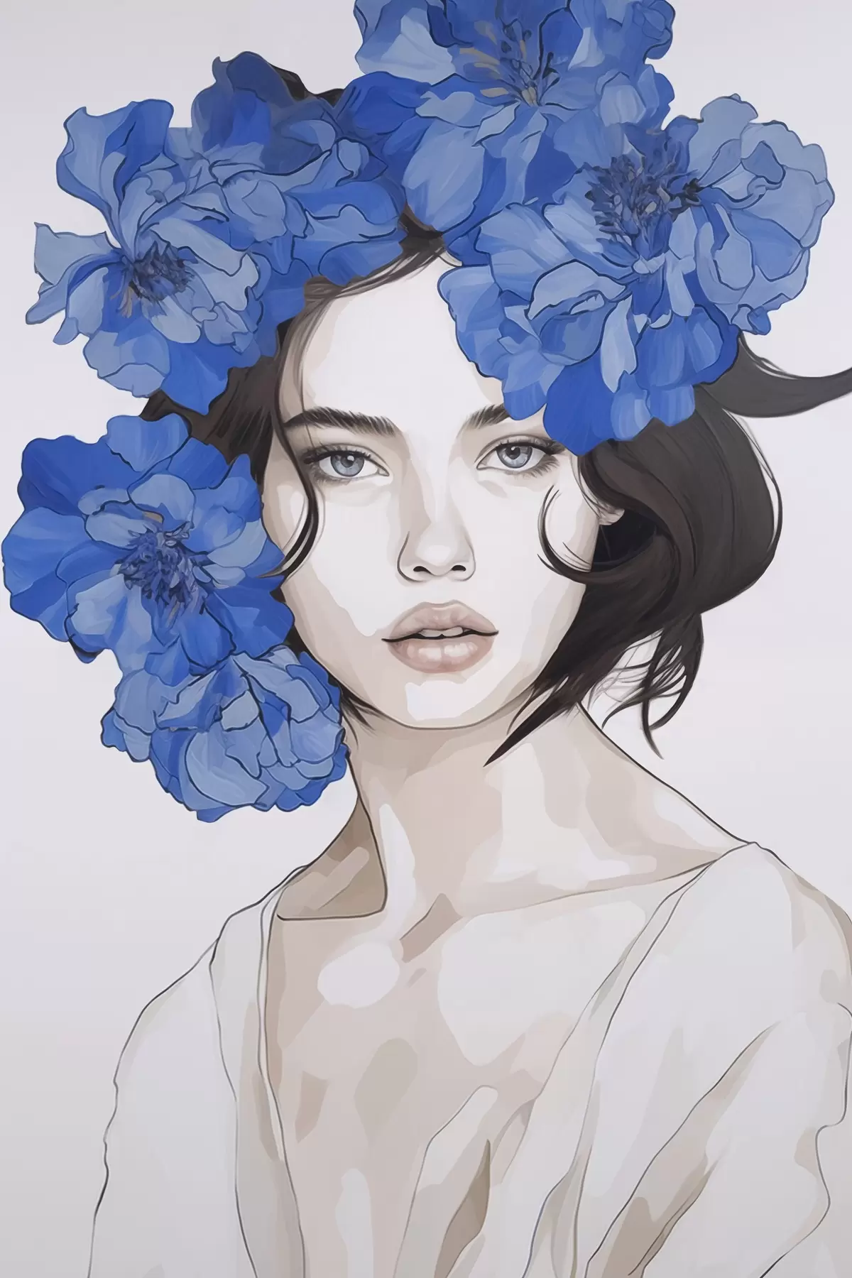 Cuadros Retrato de una niña con flores azules Nr s45756