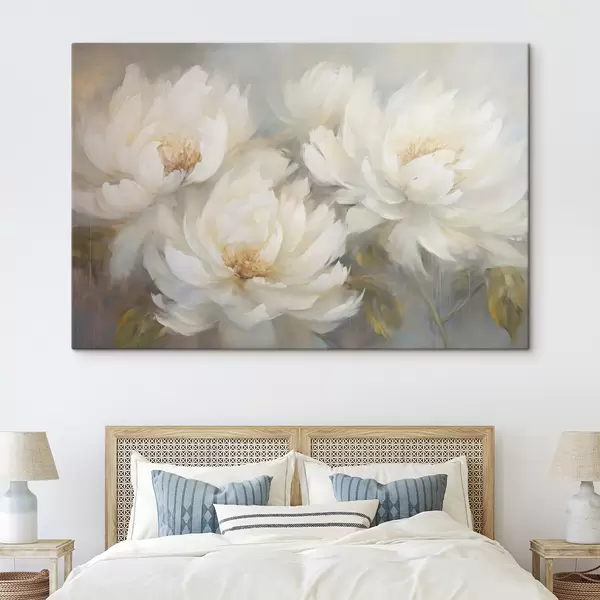 Cuadros Tres exuberantes peonías blancas sobre un delicado fondo Nr s45808