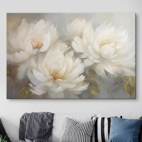 Cuadros Tres exuberantes peonías blancas sobre un delicado fondo Nr s45808