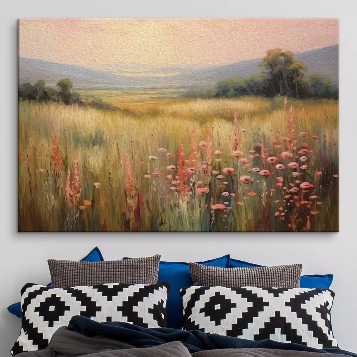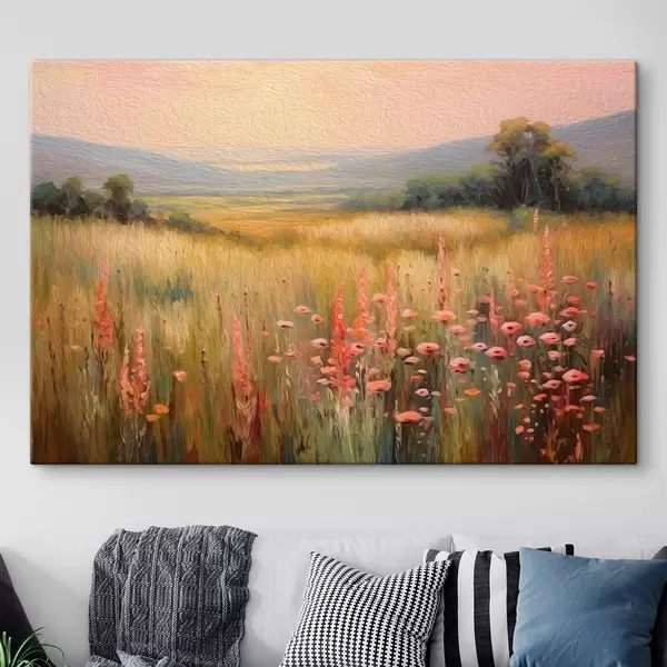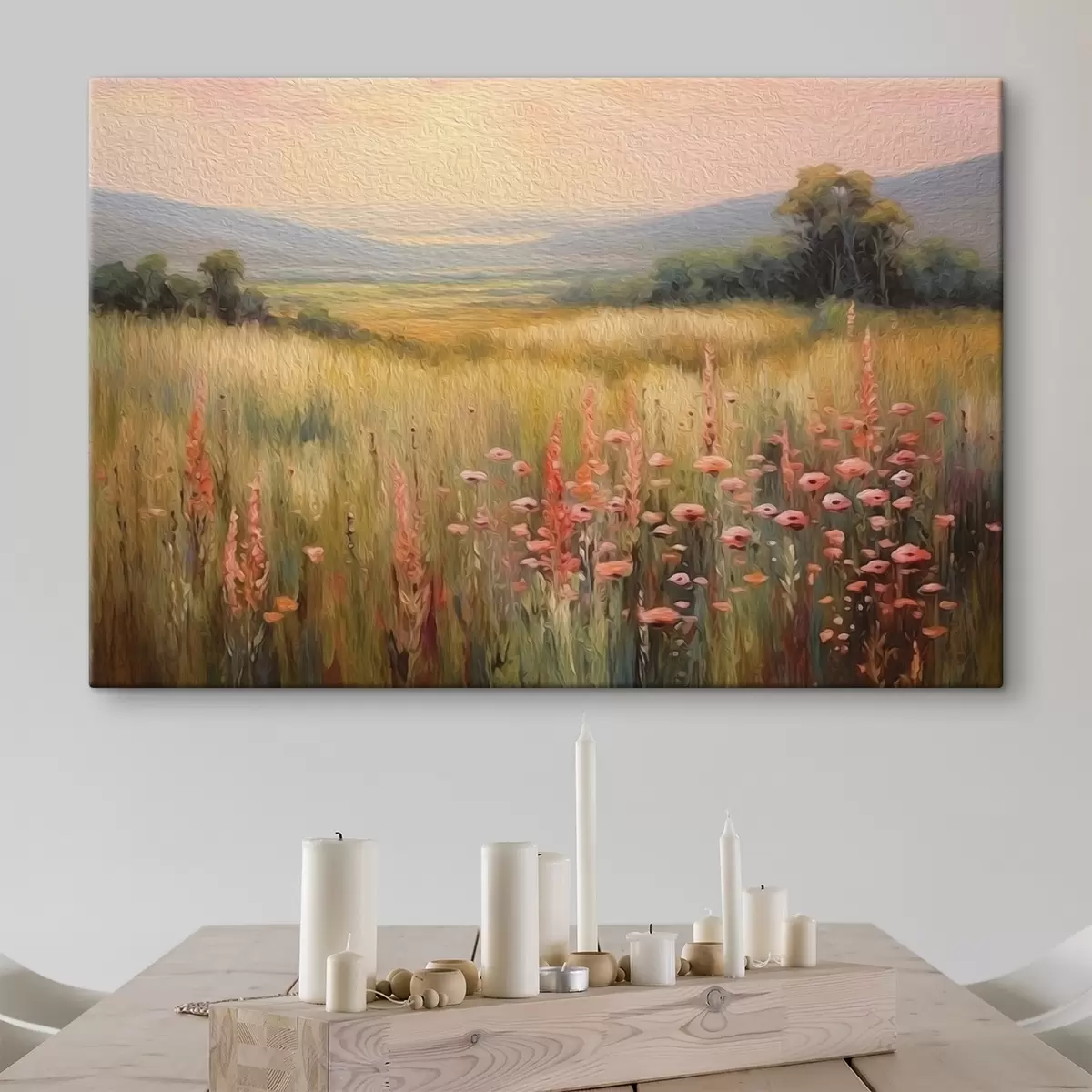 Cuadros Paisaje campestre con flores al atardecer Nr s45818