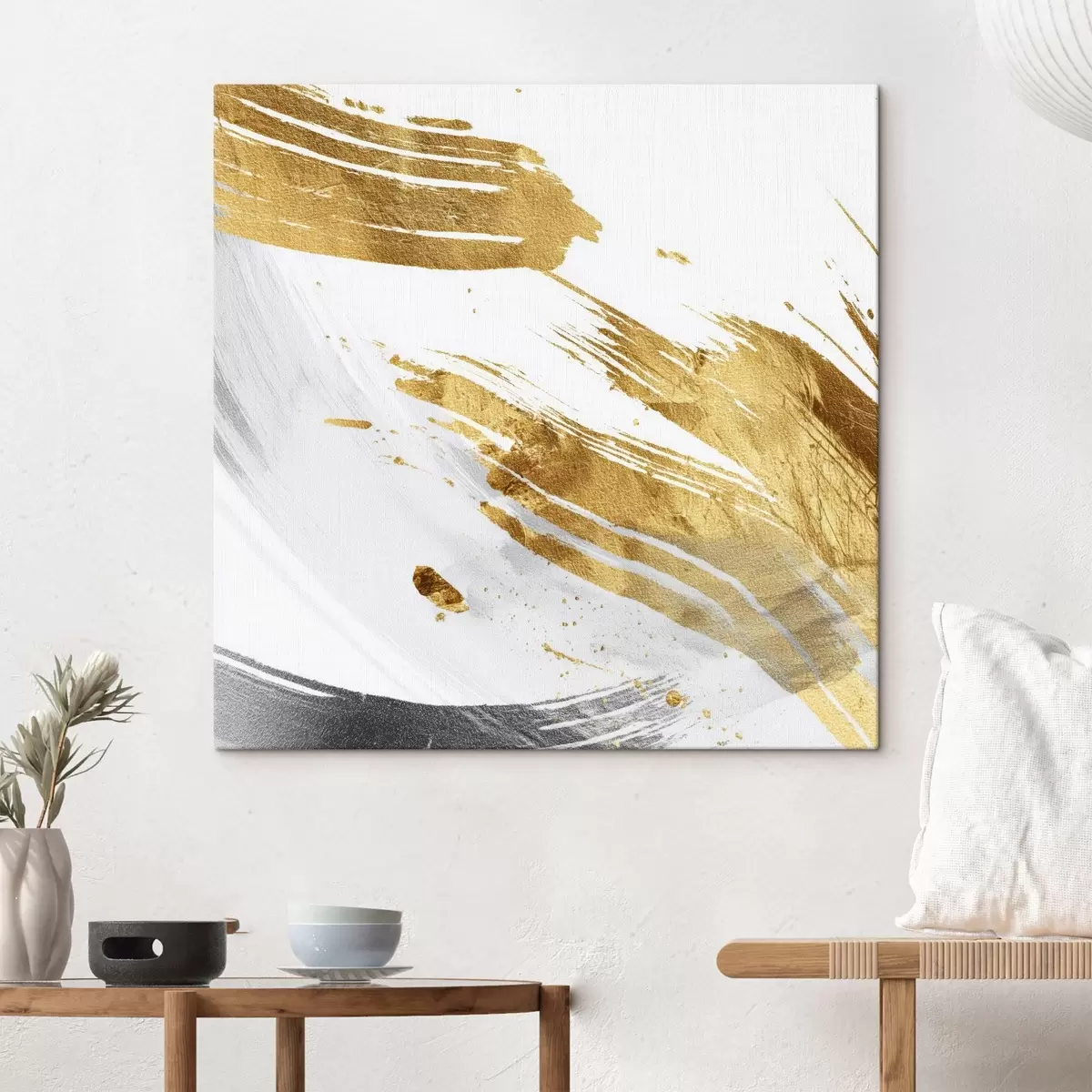 Cuadros Pinceladas dinámicas en tonos blancos y amarillo grisáceos Nr s45866