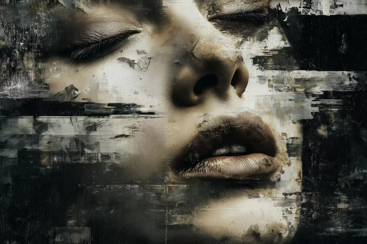 Cuadros Retrato femenino abstracto con efecto glitch y texturas Nr s45873
