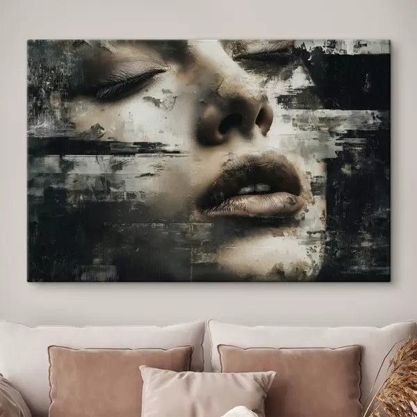 Cuadros Retrato femenino abstracto con efecto glitch y texturas Nr s45873