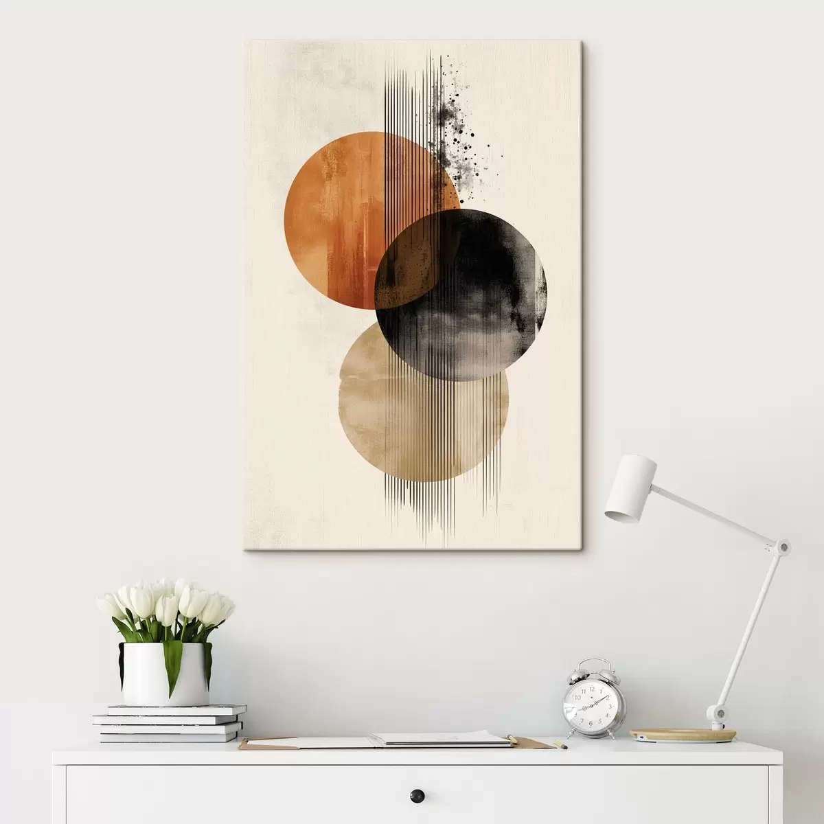 Cuadros Tres círculos texturizados con líneas en una paleta de colores terracota y negro Nr s45885