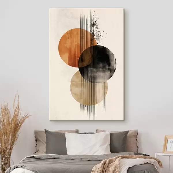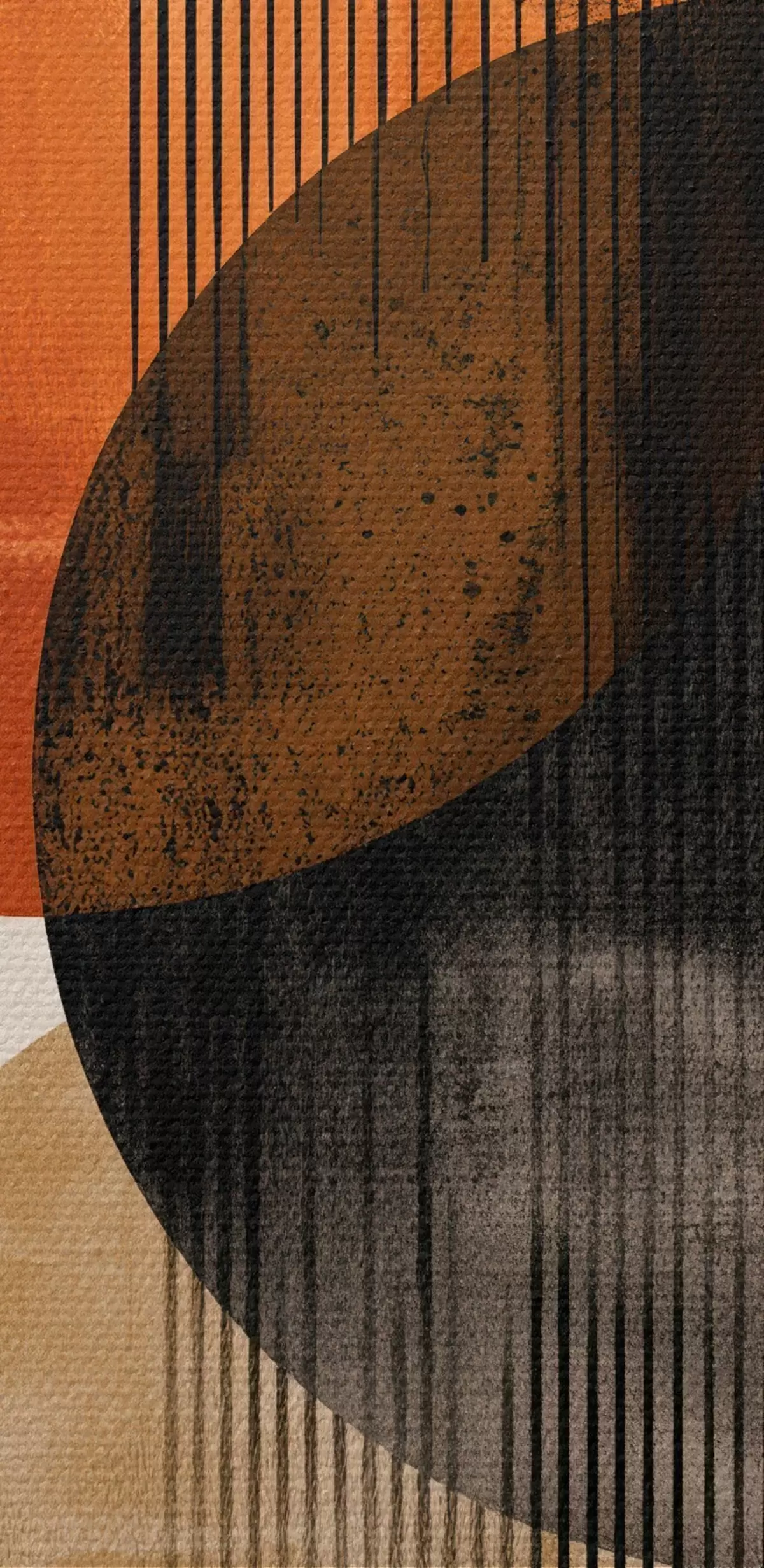 Cuadros Tres círculos texturizados con líneas en una paleta de colores terracota y negro Nr s45885