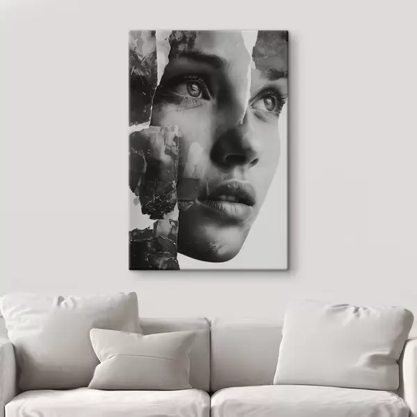 Cuadros Retrato collage en blanco y negro con capas rasgadas con textura Nr s45898