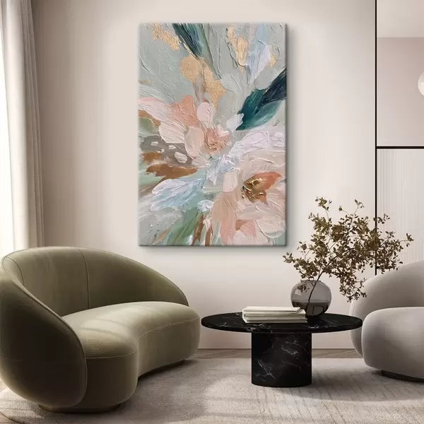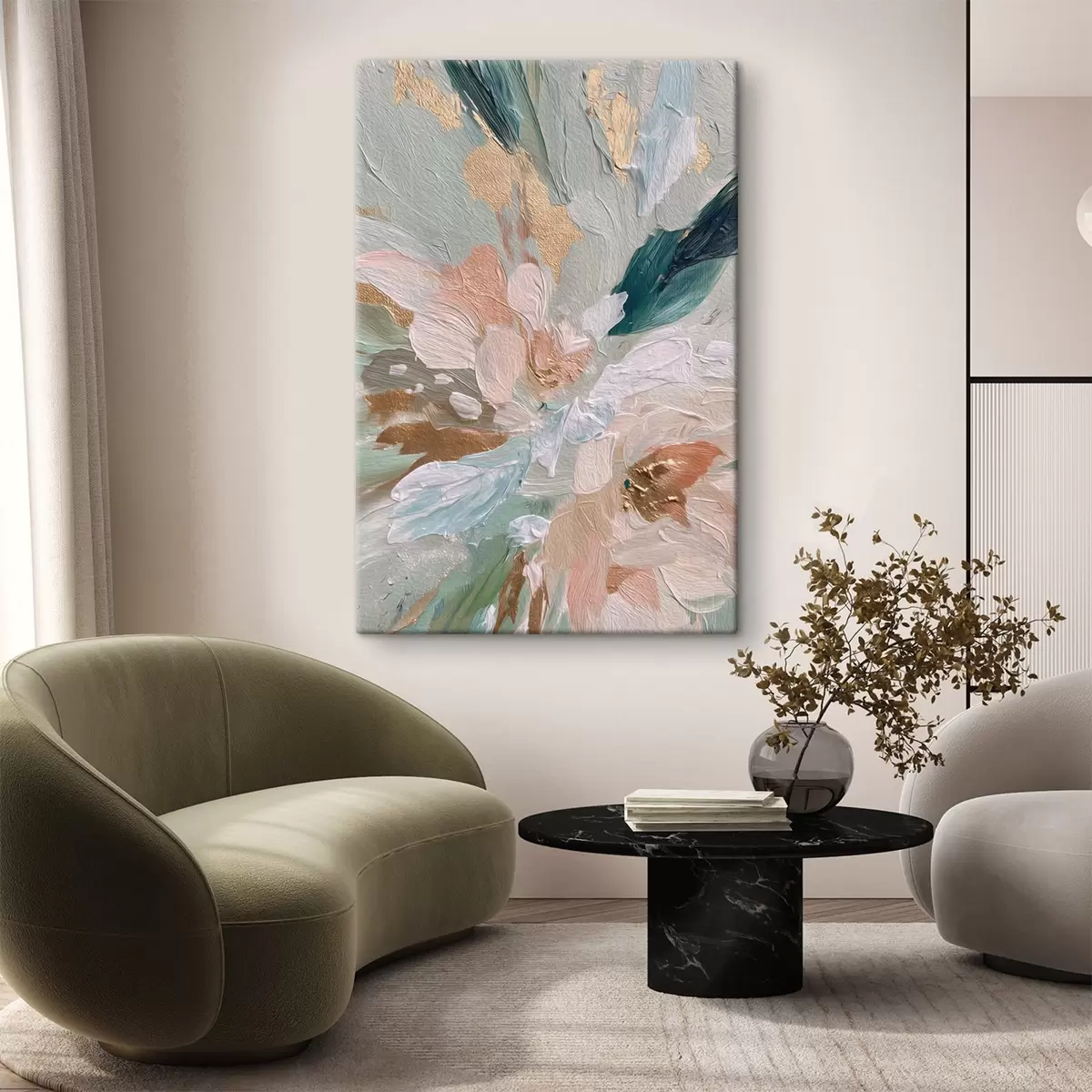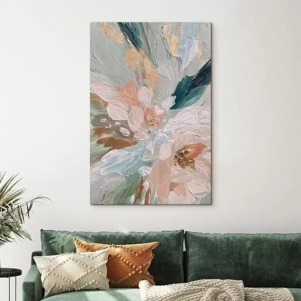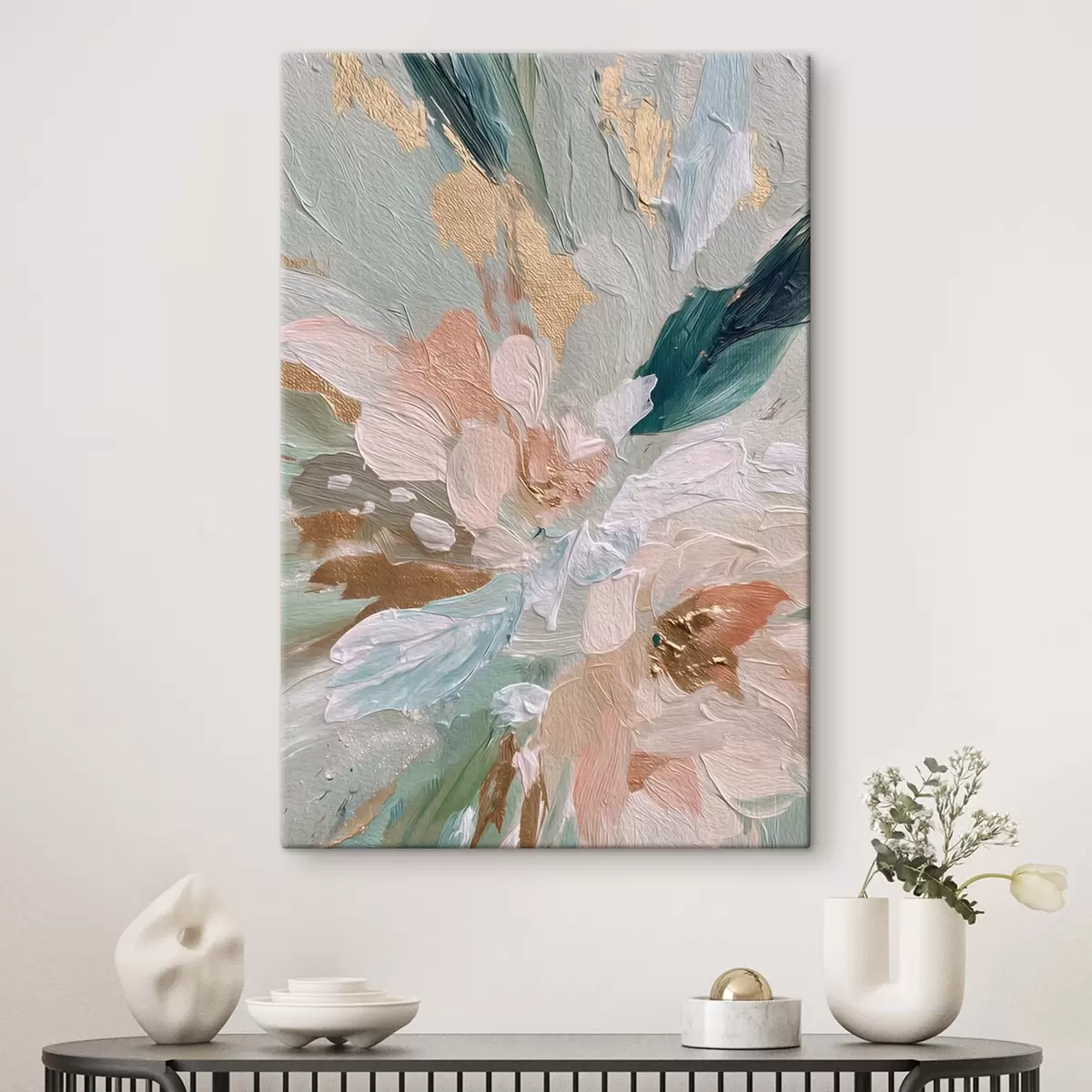 Cuadros Pinceladas florales en tonos pastel con motas amarillas Nr s45899