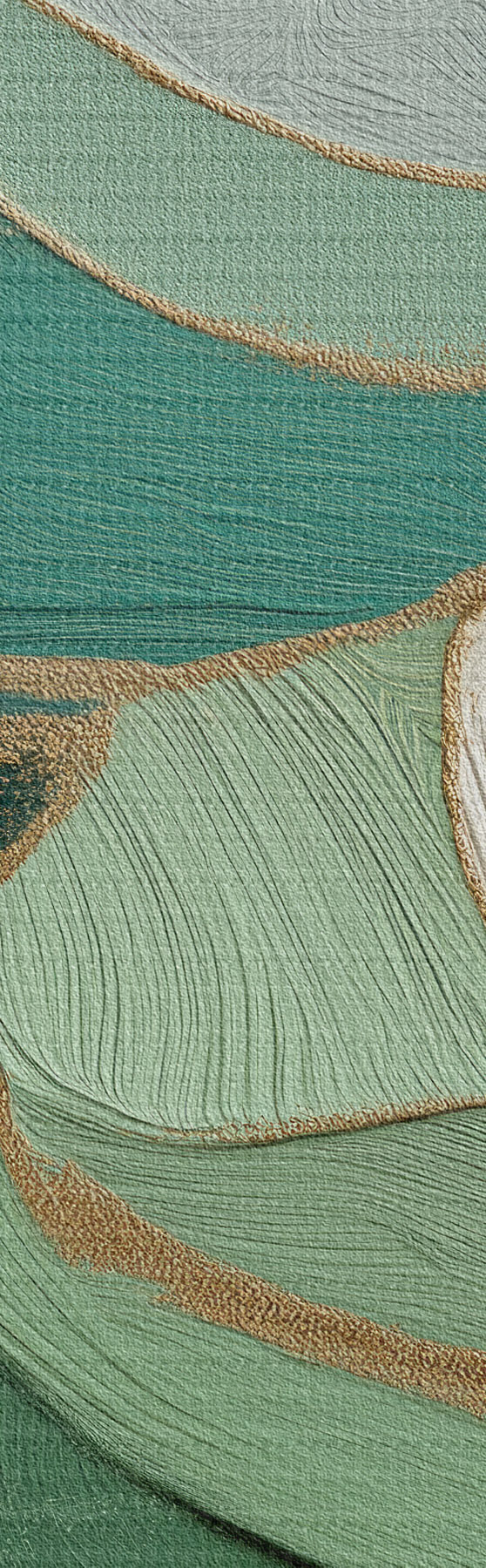 murales de pared Abstracción verde salvia con contorno amarillo s45901