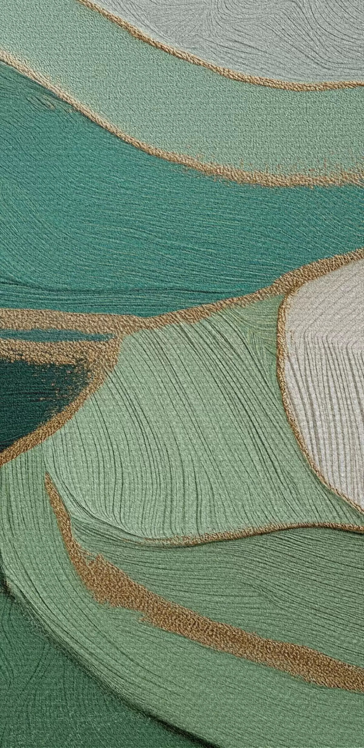 murales de pared Abstracción verde salvia con contorno amarillo s45901