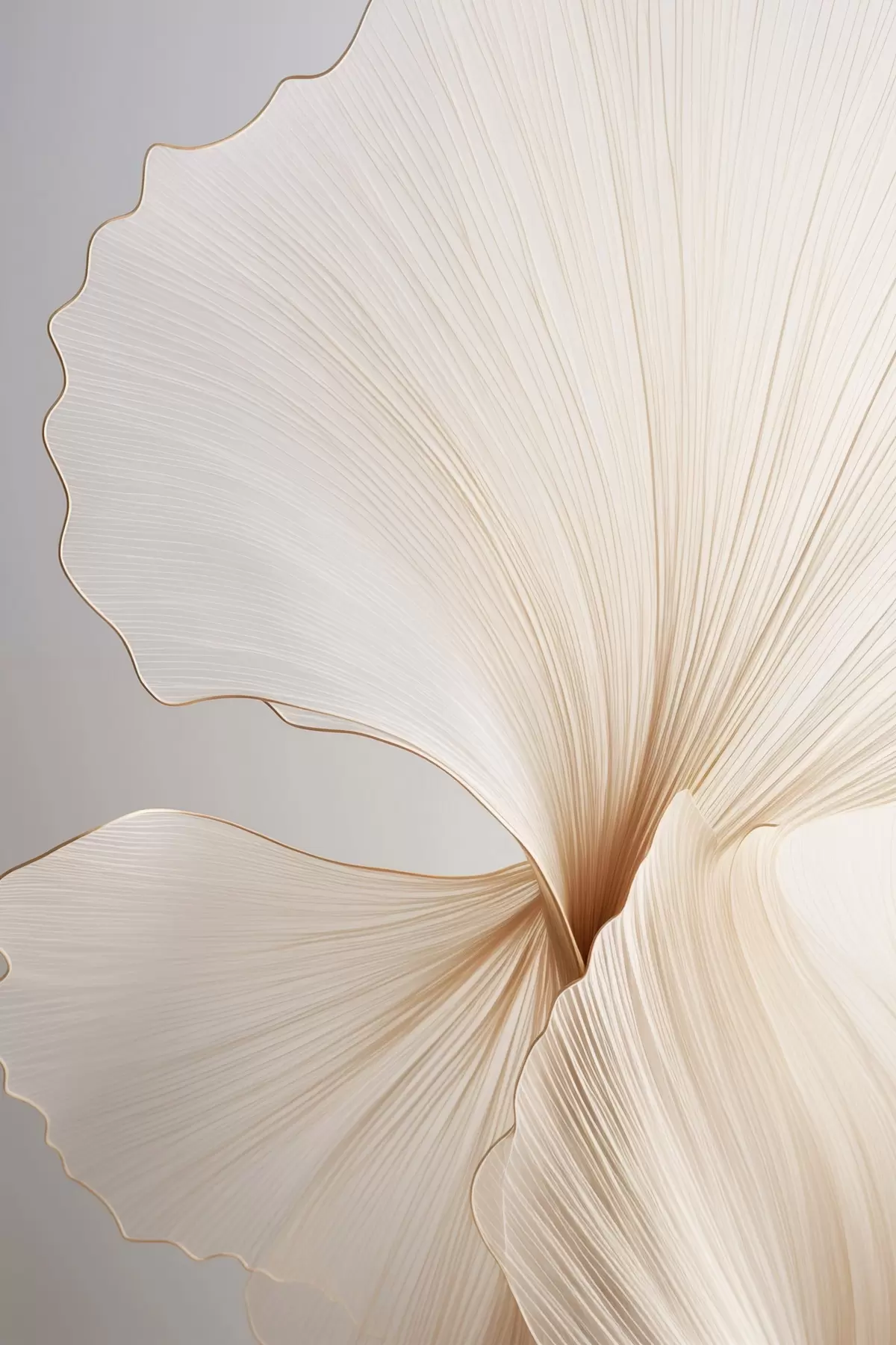 murales de pared Flores abstractas con pétalos finos y delicados en tonos blancos y beige s45923