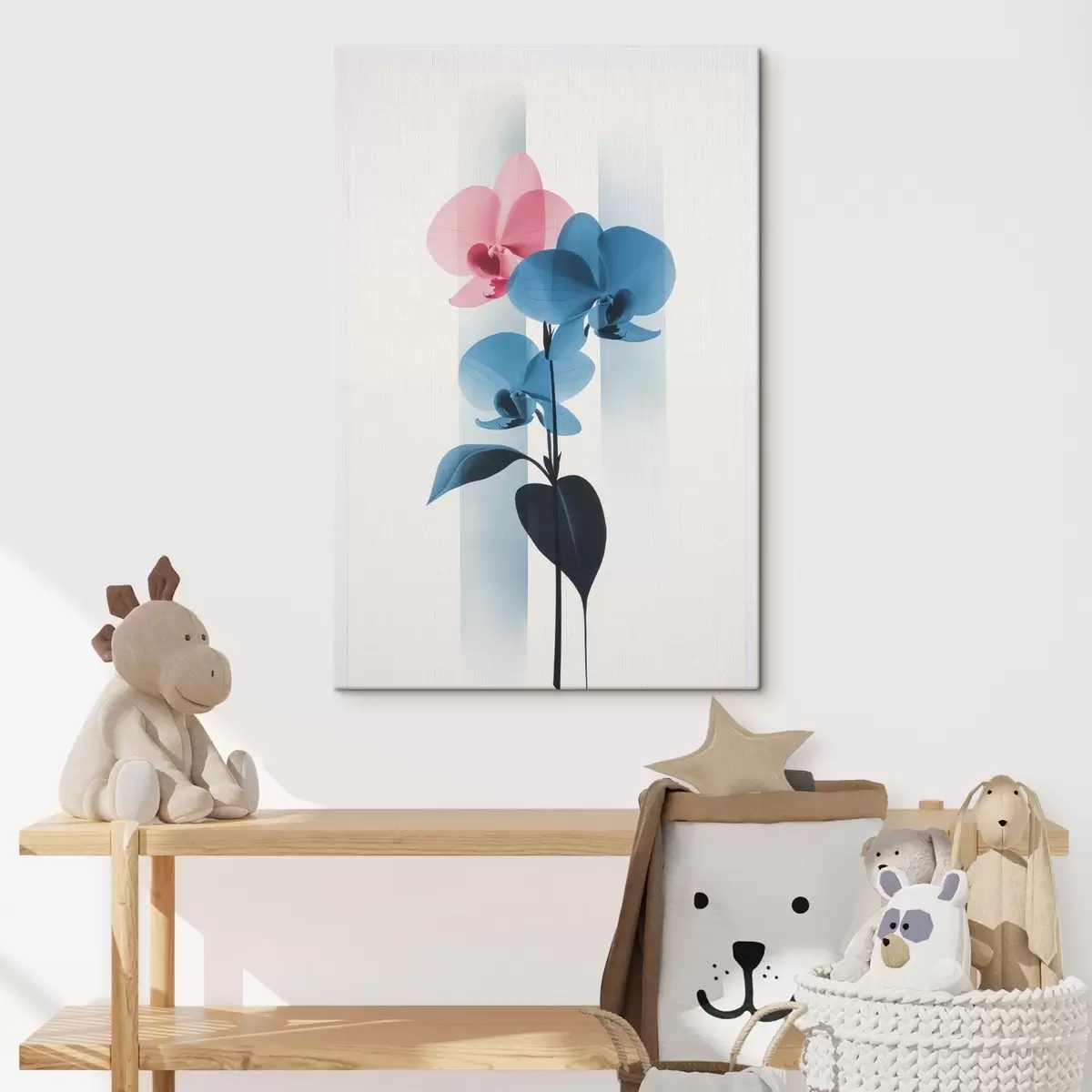 Cuadros Orquídeas con hojas sobre fondo blanco con rayas verticales Nr s45925
