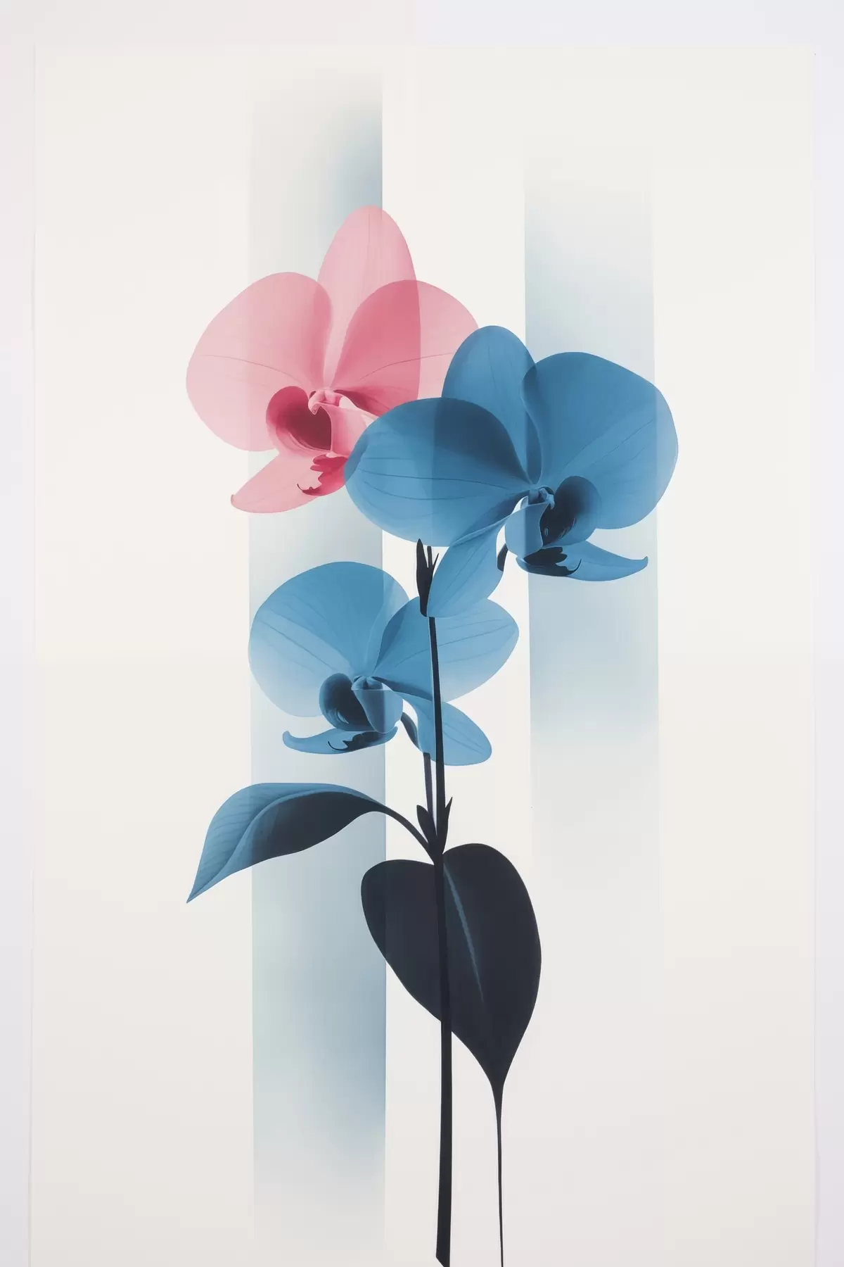 Cuadros Orquídeas con hojas sobre fondo blanco con rayas verticales Nr s45925