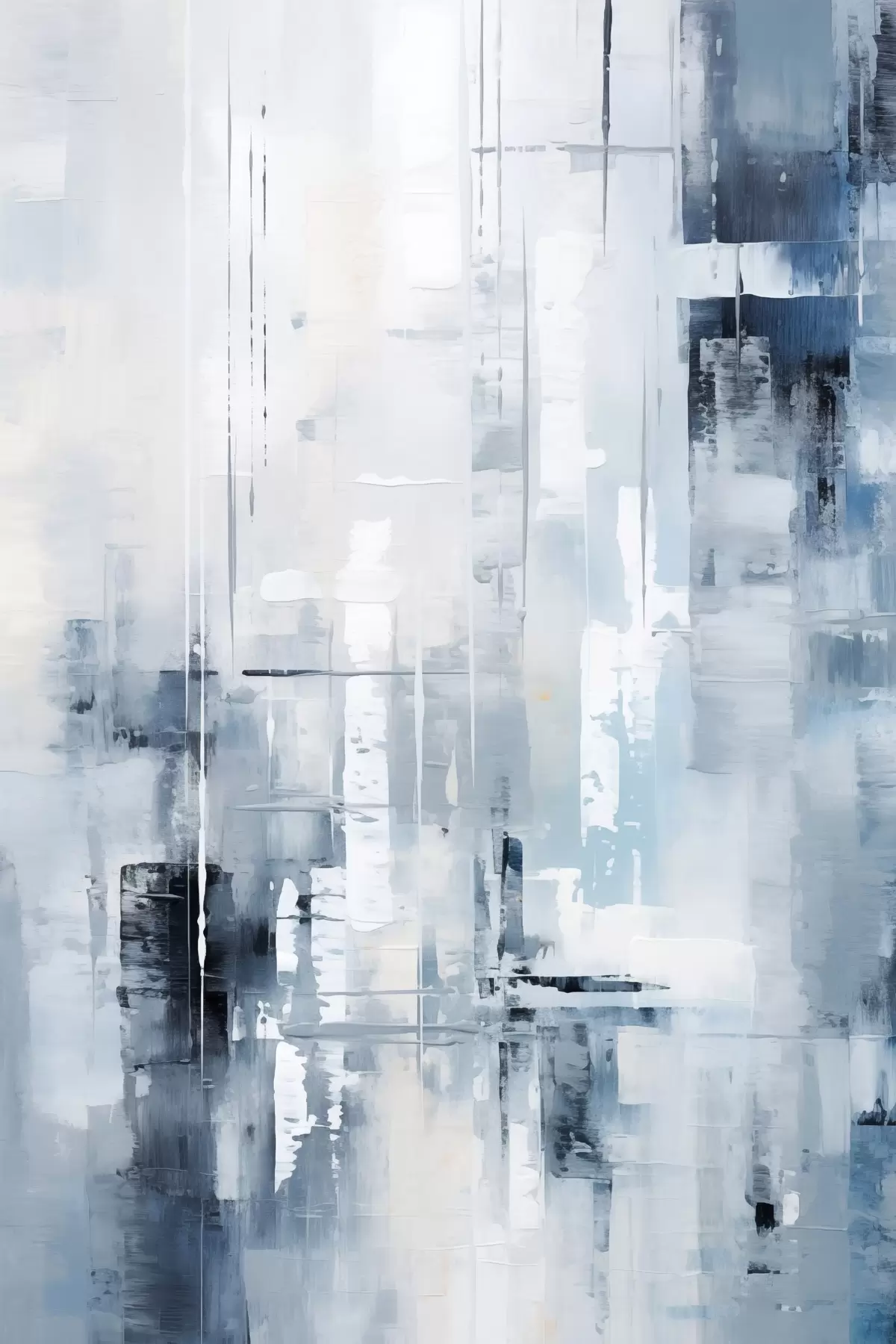 murales de pared Imitación de pintura abstracta con colores azul, gris y blanco, líneas verticales y formas geométricas s45927