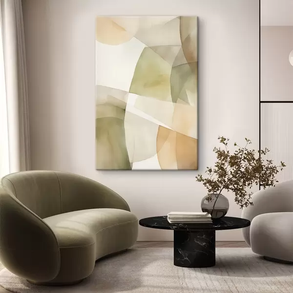 Cuadros Formas geométricas abstractas con textura de acuarela en tonos verdes, marrones y beiges Nr s45928