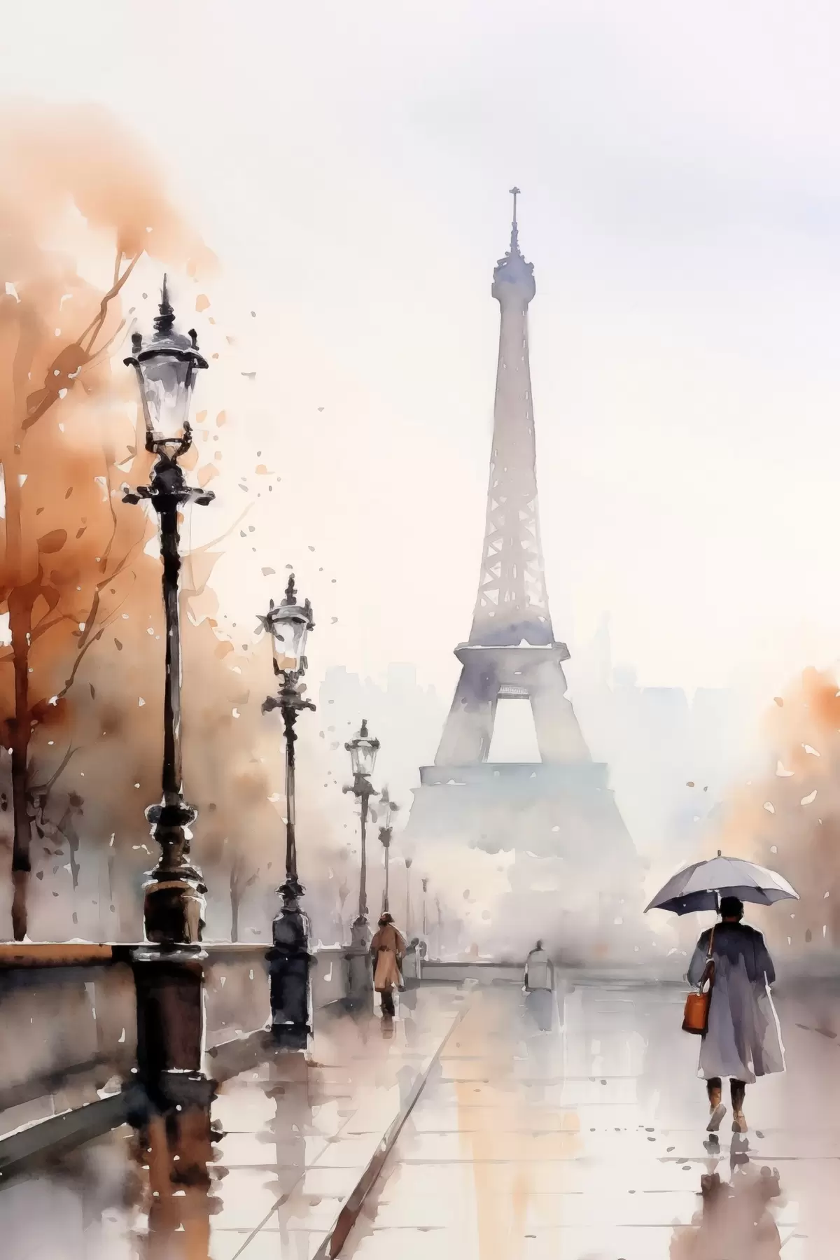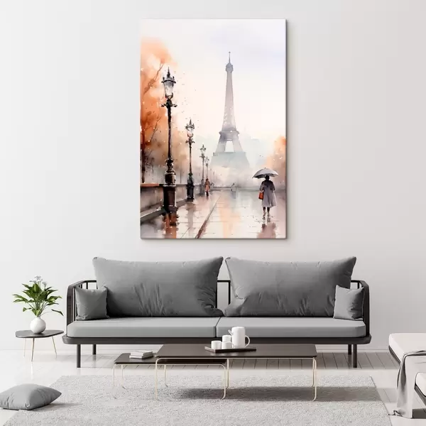 Cuadros Un día lluvioso en París con la Torre Eiffel al fondo y farolas vintage Nr s45930