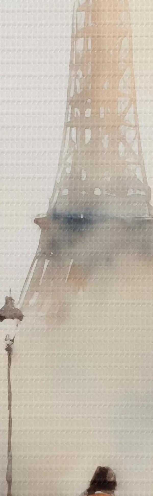Cuadros Un lluvioso día de otoño en París con la Torre Eiffel al fondo y farolas vintage Nr s45931