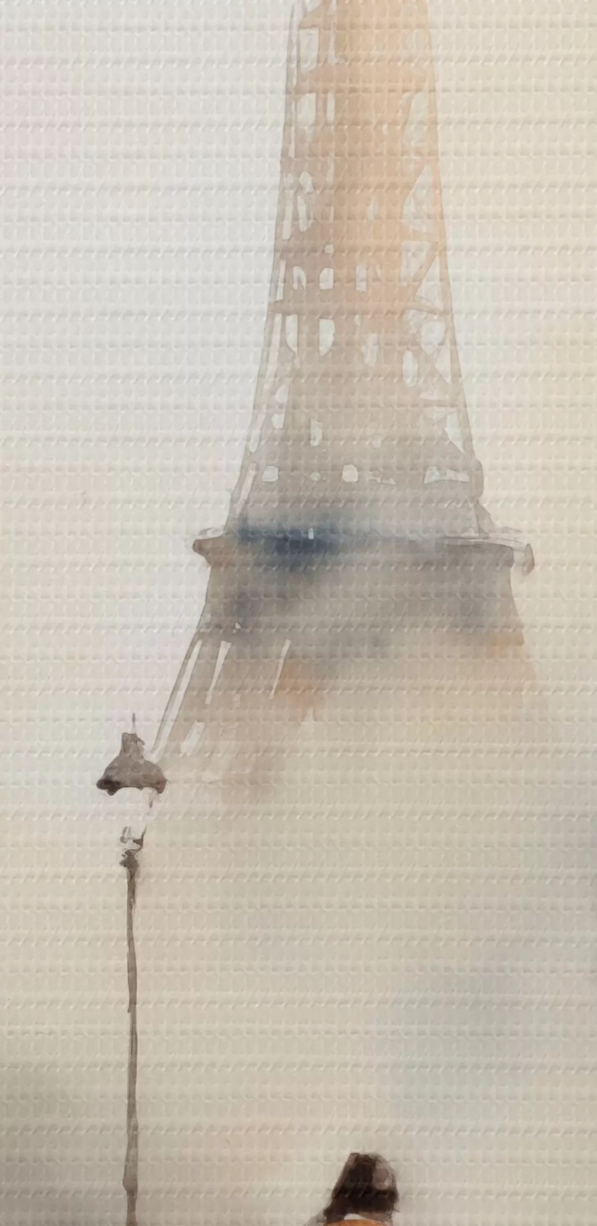 Cuadros Un lluvioso día de otoño en París con la Torre Eiffel al fondo y farolas vintage Nr s45931